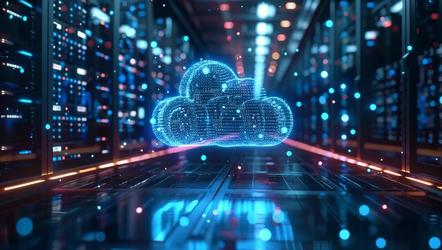 Cloud Computing and Data Storage Network A 3D Isometric Illustration on a Blue Background