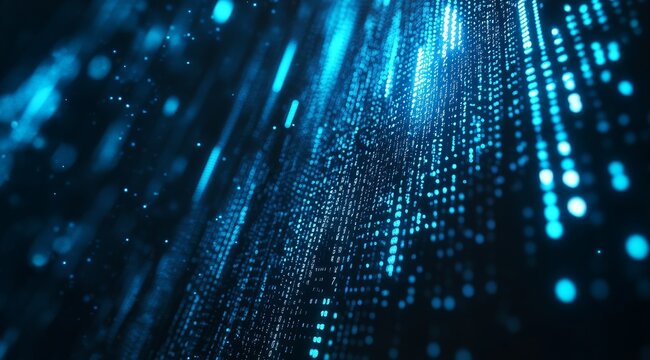 Blue digital data stream, futuristic background, tech website header