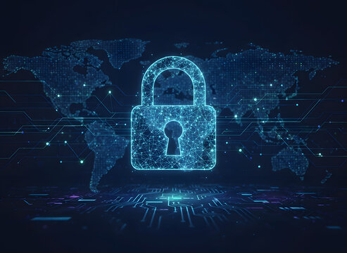 Digital glowing blue lock icon symbolizing cybersecurity data protection digital security technology concept cyber safety lock protection encryption privacy security system digital