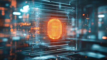 Futuristic glowing terminal window interface with touch interaction and holographic digital elements for coding, technology, programming, and cybersecurity UI design