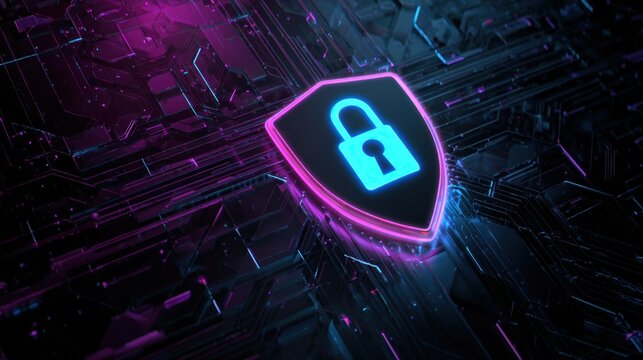 Vibrant Digital Shield with Padlock Symbolizing Cybersecurity and Data Protection