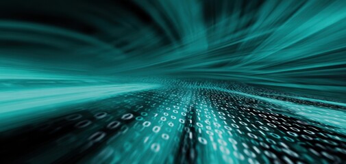 The Binary Data Stream Racing Through a Futuristic Teal Digital Matrix Landscape