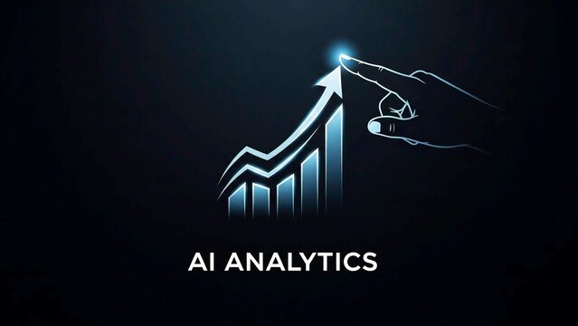 3D AI Analytics Icon with Glowing Graphs and Human Finger Activation for Data Science