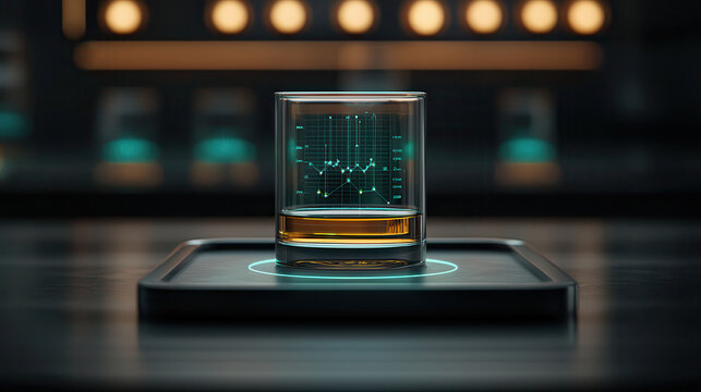 High-tech device projecting a holographic interface with vibrant graphics in a futuristic setting