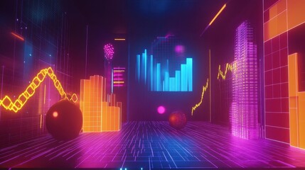 Futuristic Data Visualization Interface Cyberpunk Neon Financial Analysis Business Statistics Graph Chart Report Management Technology Concept