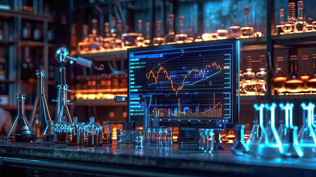 Futuristic data analysis with financial charts and graphs