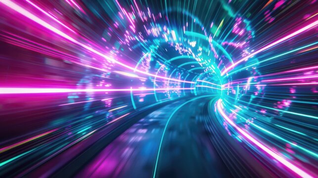 Data Visualization: A vibrant abstract background with dynamic data points, showcasing a futuristic and modern approach to data analysis. The image features a gradient of pink, purple.