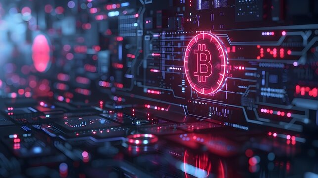 Futuristic Fintech Hub with Sleek Cryptocurrency Trading Platforms and Blockchain Data Visualization