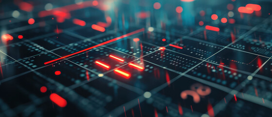Futuristic data analytics interface on digital grid