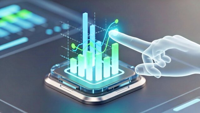High-Tech Financial Visualization With AI Elements And Illuminated Holographic Charts