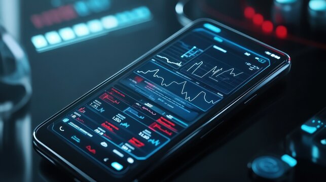 Smartphone displaying data analytics and metrics.