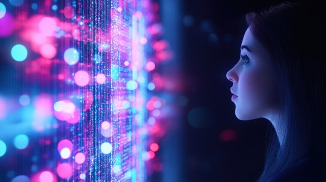 Futuristic Data Analytics Interface With Neon Graphics Images