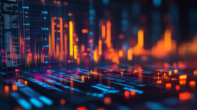 Data visualization in an abstract digital environment showcasing vibrant charts and graphs to represent analytics and trends
