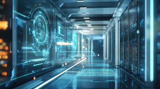Futuristic data center corridor a glimpse into advanced technology and infrastructure