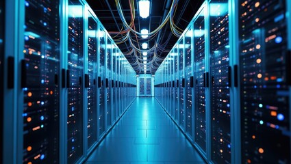 Data center room showing server racks and supercomputer equipment. concept of modern technology