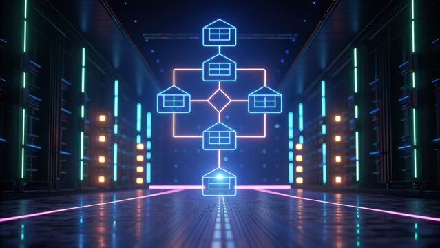 Explore advanced technology with this dynamic data center visualization for innovative solutions and powerful network infrastructure management systems