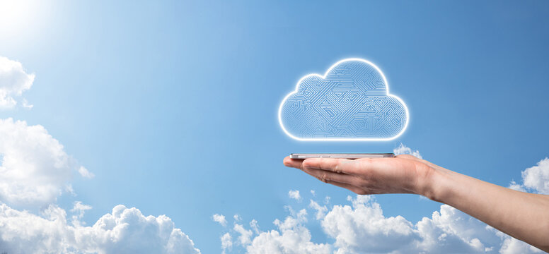 Cloud computing concept,cloud for transfer data.Cloud computing, big data center, future infrastructure, digital ai concept. Virtual hosting symbol,icon. upload download.Virtual hosting symbol