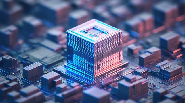 Abstract technological cityscape blue and pink