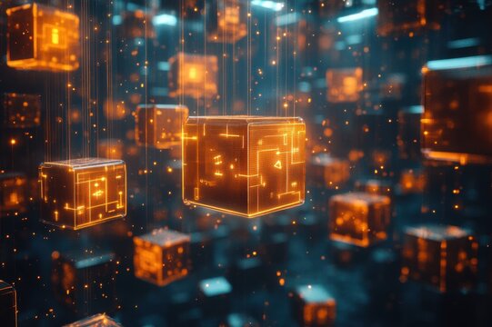 Digital innovation showcase floating data cubes virtual space 3d visualization futuristic environment abstract perspective