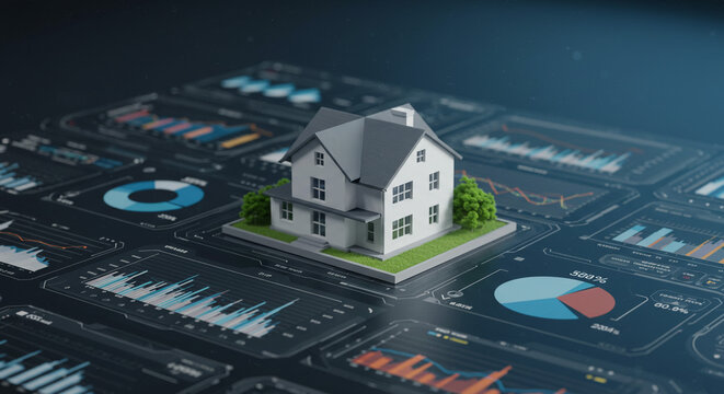 Visualize modern home investment success with futuristic financial data analysis and growth charts