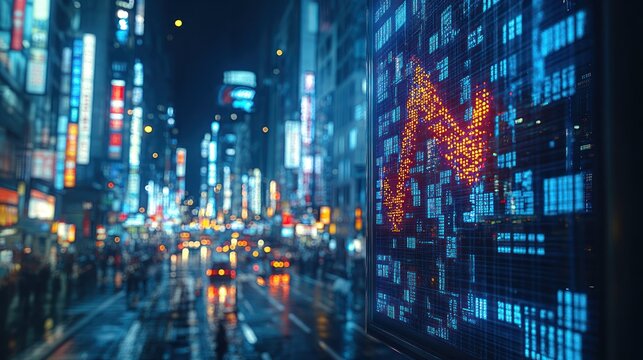 Financial data processing amid night city traffic