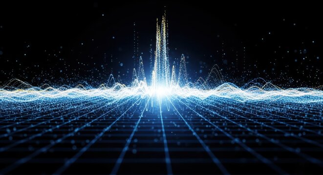 Energetic light burst over futuristic grid a mesmerizing display of digital power and cosmic energy