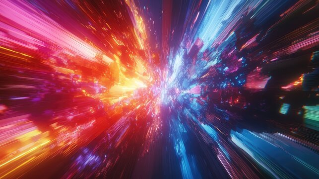 Cosmic Burst: A breathtaking abstract display of light streaks radiating outward from a central point, creating a mesmerizing visual journey through space.