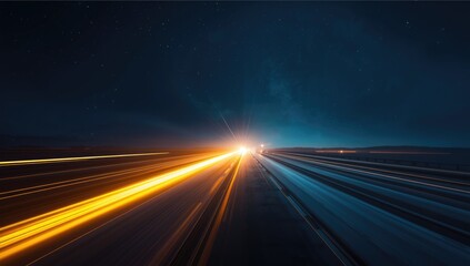 Dynamic perspective of colorful light trails flowing, showcasing motion and speed in an abstract display