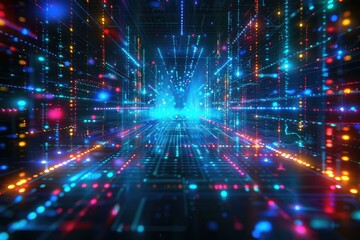 Futuristic digital illustration showcasing data pathways with glowing elements