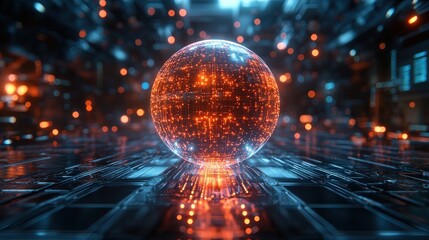 Glowing orb on futuristic tech surface
