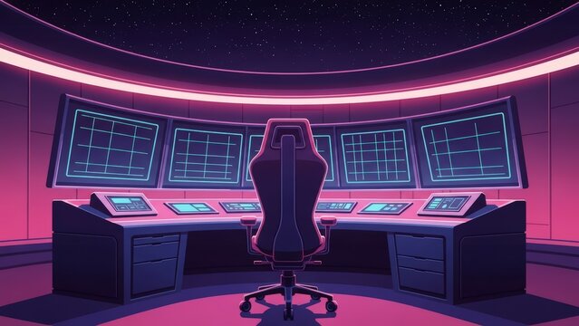 Futuristic Command Center with Multiple Monitors and Ergonomic Chair.