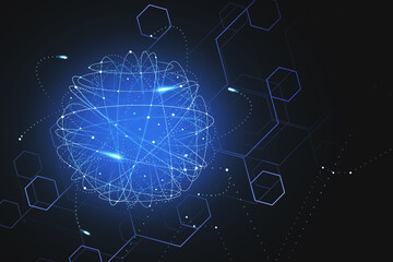 Cloud-based server system, hovering above terrain in abstract digital art. Cloud Computing service : Real Cloud and applications control over the city for network security computer