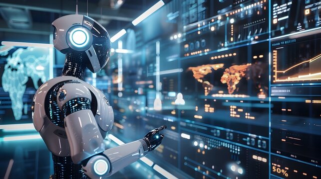 Futuristic data interface with global charts and graphs