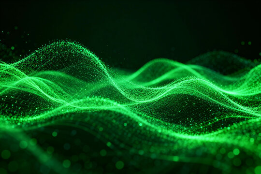 Abstract Green Particle Waves on Dark Background