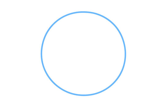 Blue neon glowing circle frame outline on transparent background creating futuristic tech design element