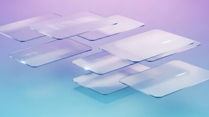 Abstract floating translucent glass panels over a vibrant gradient background