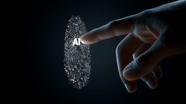 Silhouette of a hand with biometric scanners illuminated against a blue background