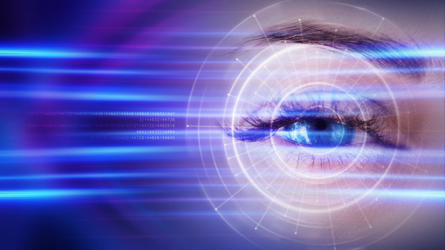 Border control agents use iris scanning technology to verify the identity of travelers entering the country.