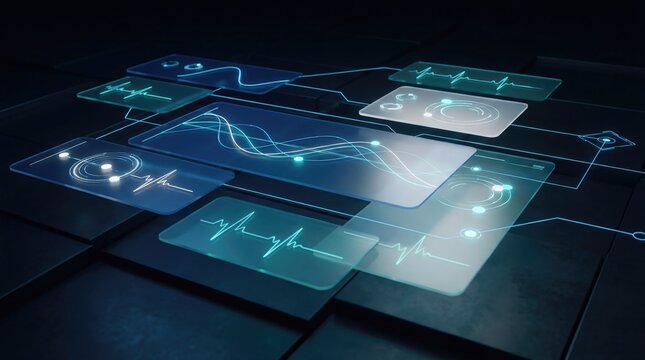 Abstract futuristic technology background with glowing lines charts and data visualization