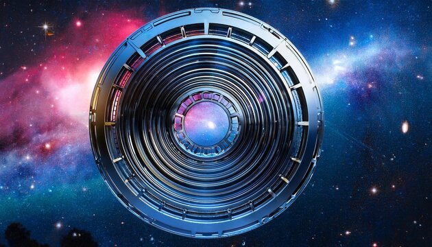 Illuminated platform hovering above Earth with starry backdrop and planets
