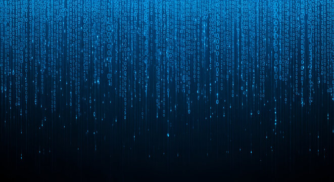 Floating numeric string in virtual 3d data matrix with neon holographic digit columns