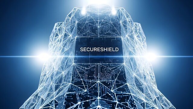 Digital screens with glowing code, data streams and abstract graphics visualize cybersecurity, software development, ai and network analytics in a futuristic blue toned tech interface background