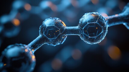 Abstract 3D rendering of a molecule with metallic spheres and glowing