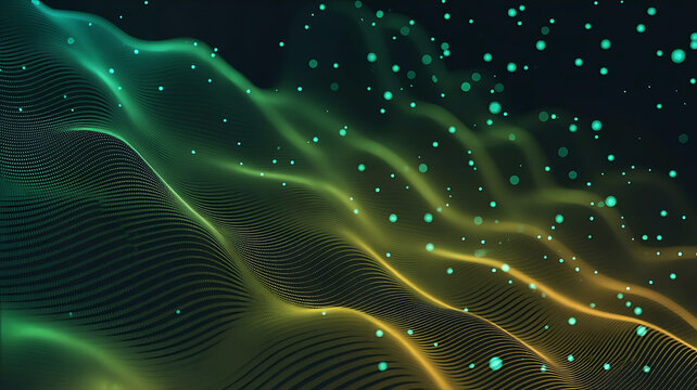Abstract futuristic technology background with glowing nodes and connections representing data and communication networks