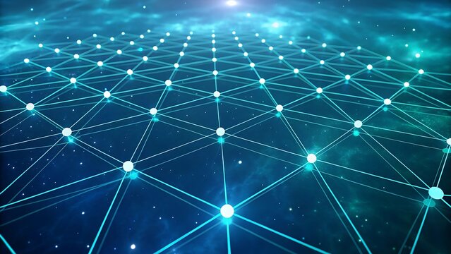 Dynamic interconnected network of glowing nodes and lines creates a futuristic digital web for technology concepts