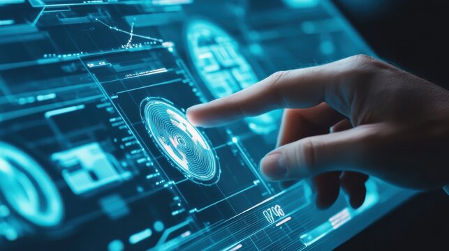 Logistics manager hand using futuristic tracking dashboard for efficiency control