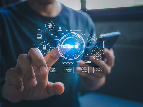Futuristic concept of progress and innovation with a hand touching a digital loading bar. Symbol of