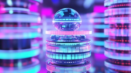 Digital data processing with futuristic neon geometric shapes