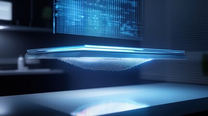 Futuristic data processing interface in dim light