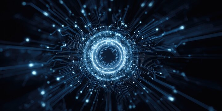 Abstract technology design featuring circular patterns & lines in blue